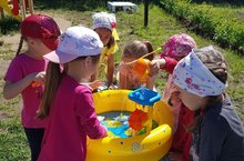 Лето – это период развлечений, впечатлений и нового опыта в жизни малышей. Основную часть времени дети проводят на свежем воздухе. Прием детей, гимнастика, игровая деятельность и другие мероприятия организовываются на свежем воздухе. Акцент делаем на повышении двигательной активности детей через подвижные игры, спортивные развлечения, экскурсии, выносной материал. Дети охотно работают в цветнике, на огороде, участвуют в сюжетно-ролевых играх, играх с водой и песком, организовываются театрализованные представления, разыгрываются игровые ситуации на площадке, создаются условия, обеспечивающие охрану жизни и укреплению здоровья детей.