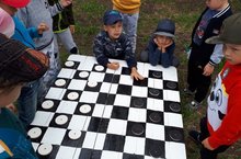 В группе 4 родители изготовили большую шашечную доску и вырезали из дерева шашки,покрасили их..