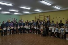 Дети с удовольствием вместе с папами состязались в командах"Летчики"и "Танкисты",пели песни,читали стихи...