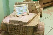Дедушка воспитанника группы 7 Шаймуллина Ислама, Шаймуллин Энгель Шарифуллович,превратил ствол векового тополя в такой чудо автомобиль,каждый день встречающий всех желающих прокатиться в увлекательное путешествие. -