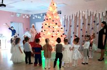 Разноцветные, сверкающие гирлянды и ярко украшенная ёлочка принесли детям ощущение чуда. С самого начала представления сказочные герои увлекали детей в волшебный мир сказки. Дети окунулись в праздничную атмосферу приключений, поучаствовали в интересных конкурсах. С появлением Деда Мороза начался настоящий праздник с песнями и танцами, хороводами вокруг ёлки.