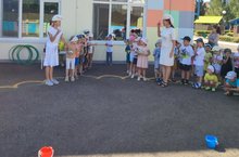 Наши дошколята встретили долгожданных гостей, участвовали в различных приключениях: «попали в подводное Царство» (на море), где окунулись в «пучину ярких событий» - играли в игры, танцевали, пели песни о лете, о морских обитателях, проводили эстафеты, вспоминали морских жителей, пускали мыльные пузыри и, конечно, обливались.