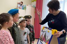 Библиотекарь - Галина Валерьевна познакомила воспитанников с очень красочной книгой «Великая Отечественная война», которая содержит рассказы, стихи, очерки, письма солдат и много другого очень интересного и тематического материала. -