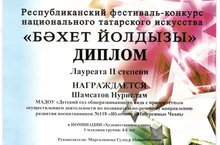 Ежегодно наши воспитанники участвуют и становятся победителями регионального конкурса детского творчества "Бэхет йолдызы". Нынешний год - не исключение. Поздравляем победителей и желаем всем дальнейших успехов и побед!!! Огромная благодарность родителям, которые участвуют в жизни сада!