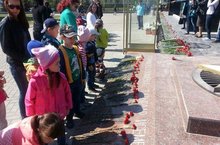 Сегодня с детьми старшей группы №13, был организован поход к памятнику погибшим в годы ВОВ, с возложением цветов к вечному огню.