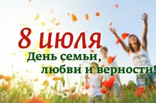 День семьи, любви и верности! 08.07.2019 8 июля россияне отмечают такой прекрасный праздник, как День семьи, любви и верности. А еще 8 июля – это церковный праздник — День памяти святых Петра и Февронии. Они считаются покровителями семьи и брака.