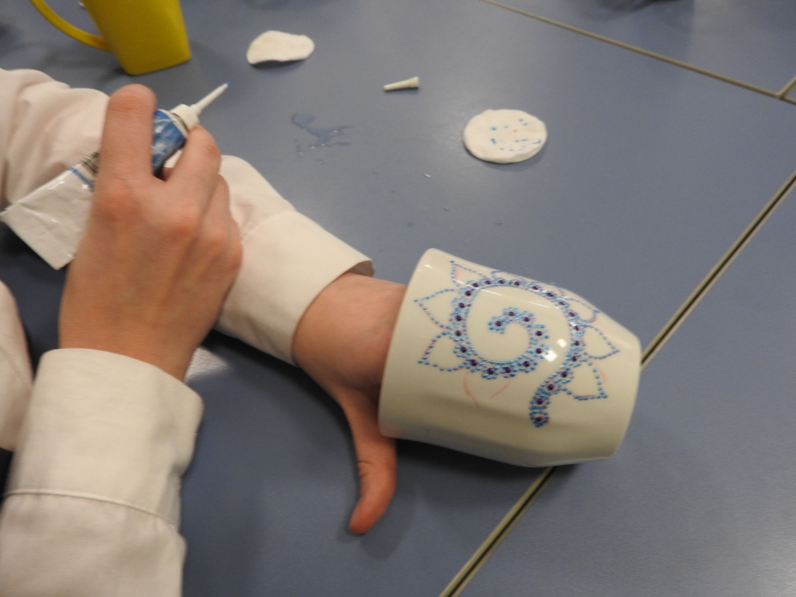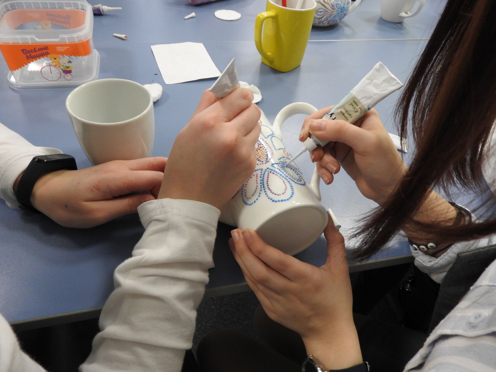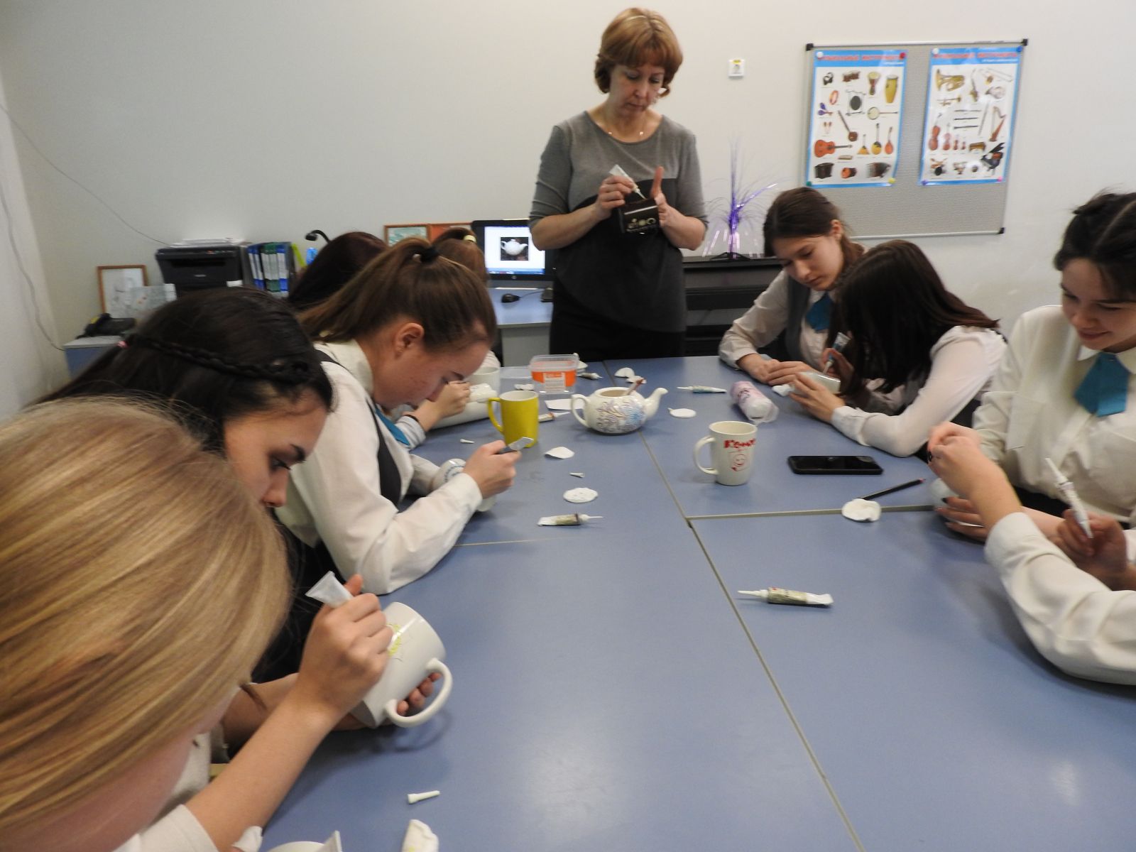 В рамках акции Дни единых действий «Батл креативных идей», посвященный году народного творчества девочки тимуровского отряда «Радуга добра» встретились с Еленой Петровной, талантливейшим человеком. У нее просто золотые руки, какие прекрасные вещи она делает, потрясающая фантазия! Елена Петровна провела для девочек мастер класс по точечной росписи чайных предметов. Она показала презентацию своих работ, рассказала и показала способы, технику росписи, какие краски для этого необходимы. Девочки попробовали сами расписать кружечки. Получилось неплохо для первого раза. Но самая лучшая работа получилась у Нины Дрониной, просто волшебство рук!