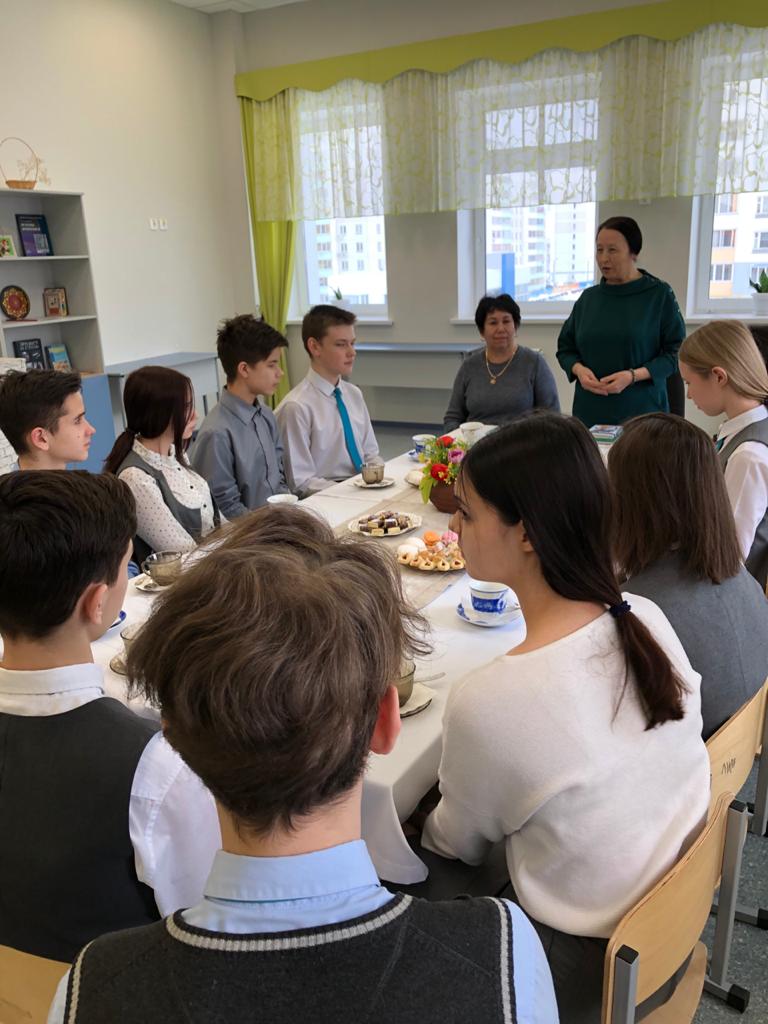 В рамках акции Дни единых действий «Батл креативных идей», посвященный году народного творчества тимуровский отряд «Радуга добра» организовал встречу с поэтессой города Набережные Челны, членом союза писателей Альфией Минзануровной Ситдиковой. В дружеской теплой обстановке за чашечкой чая, поэтесса рассказала о своем творчестве, читала нам свои стихи, поэмы на русском и татарском языках. Презентовала свои книги. Больше всего запала нам в душу поэма, посвященная матери, о нелегком военном времени. Сколько трудностей, горя, невзгод выпало на хрупкие женские плечи. И они выстояли, горе их не сломило. Это ли не подвиг?! Ребята задавали Альфие Минзануровне вопросы, даже попробовали сочинить маленькое стихотворение о сегодняшней встрече. Получилось неплохо, еще бы, когда рядом поддержка такого талантливого человека!