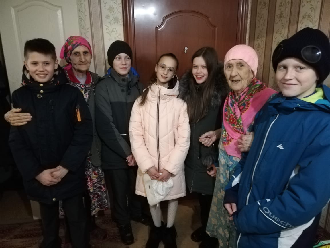 Тимуровский отряд "Радуга добра" МБОУ "СОШ 30" посетили тружеников тыла Султанову Таскиру Султановну и Хакимову Гульсабиру Махмутовну.
