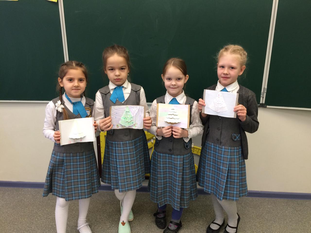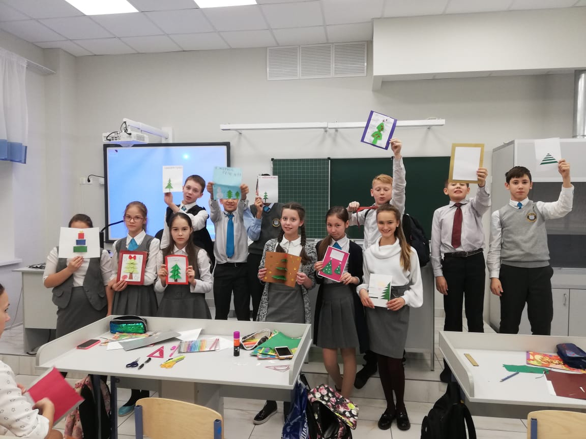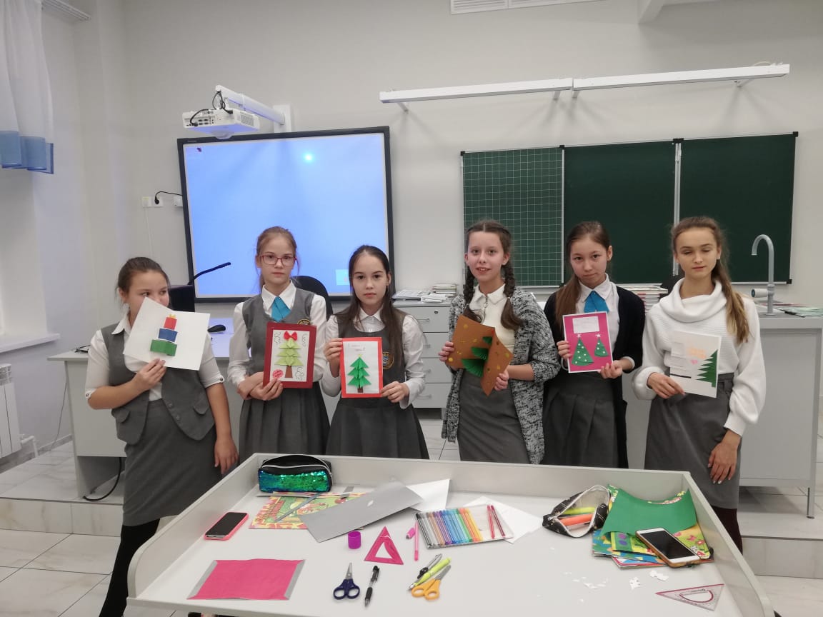 и провели мастер-класс для учеников школы по изготовлению новогодних открыток.