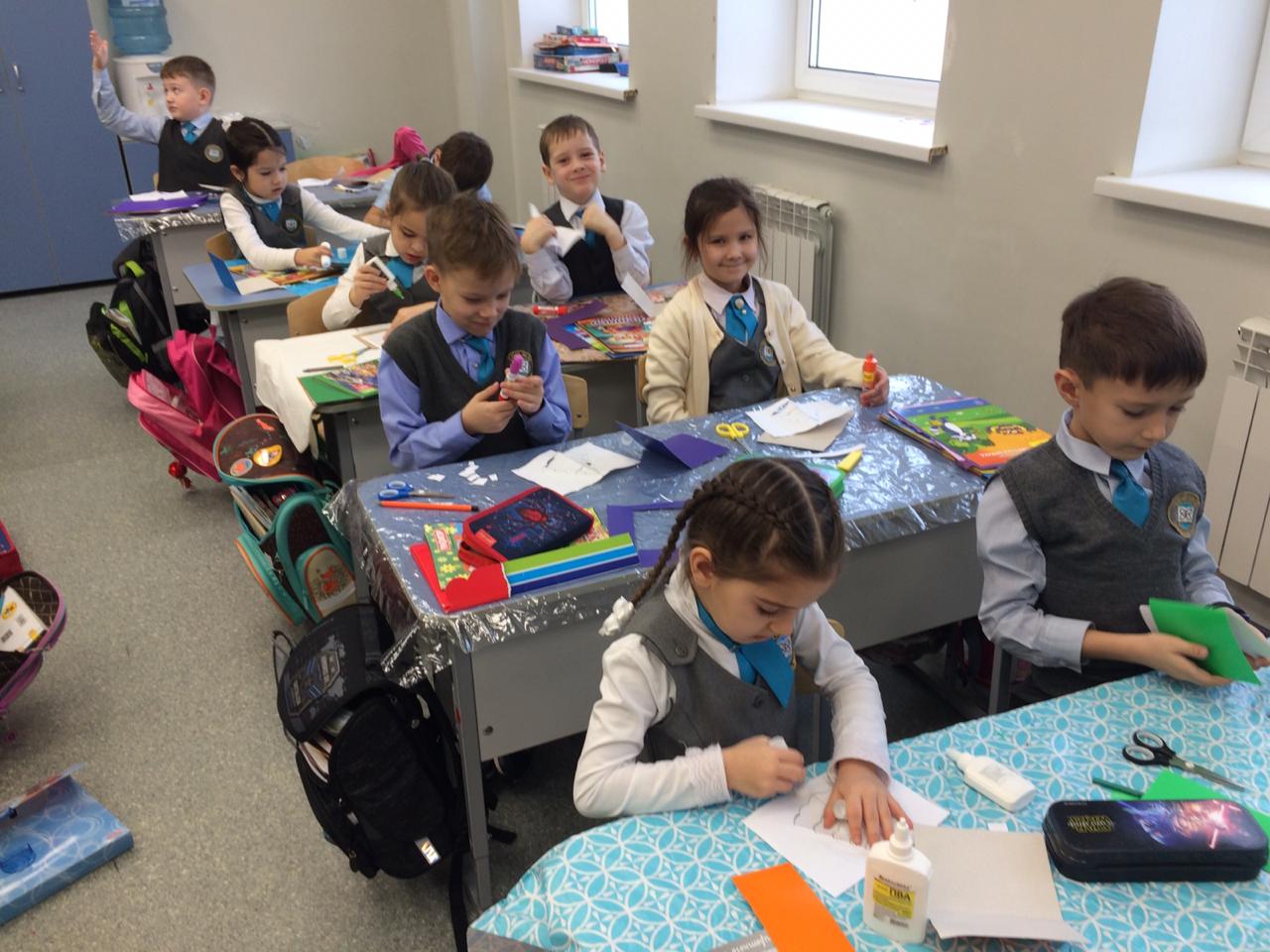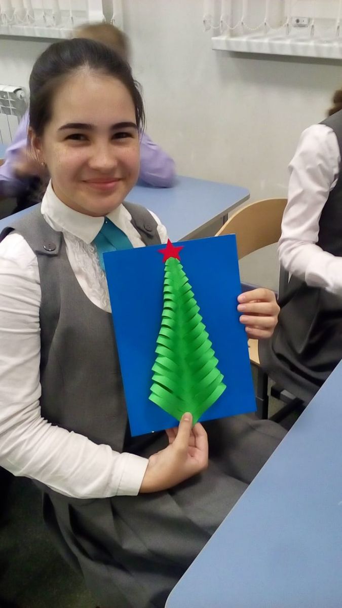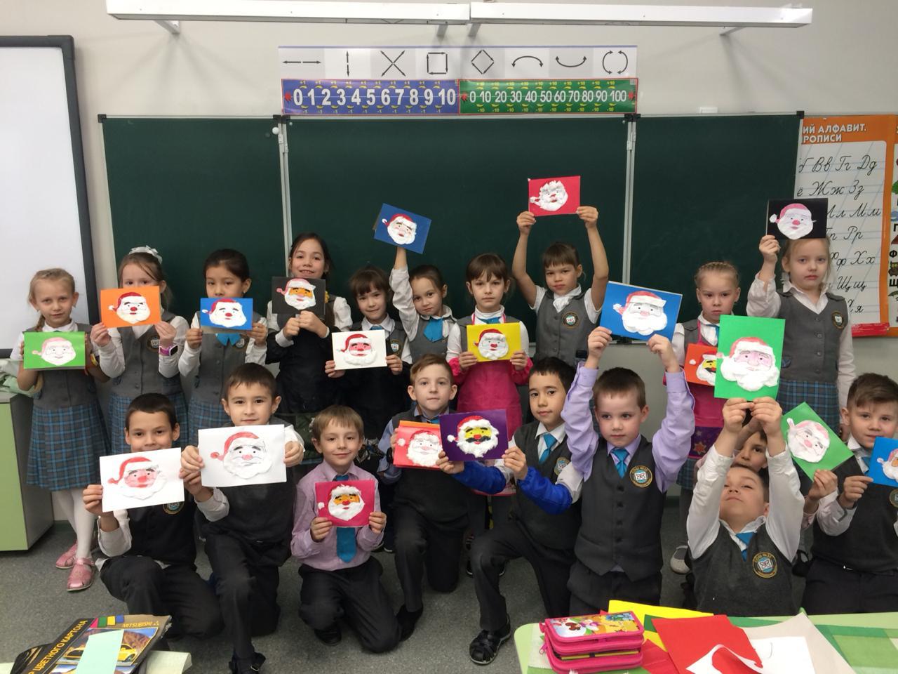 и провели мастер-класс для учеников школы по изготовлению новогодних открыток.
