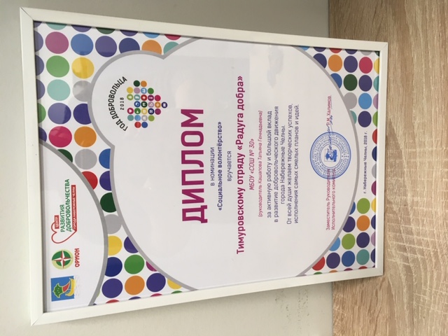 5 декабря 2018г. тимуровский отряд "Радуга добра" был награжден дипломом в номинации "Социальное волонтерство"