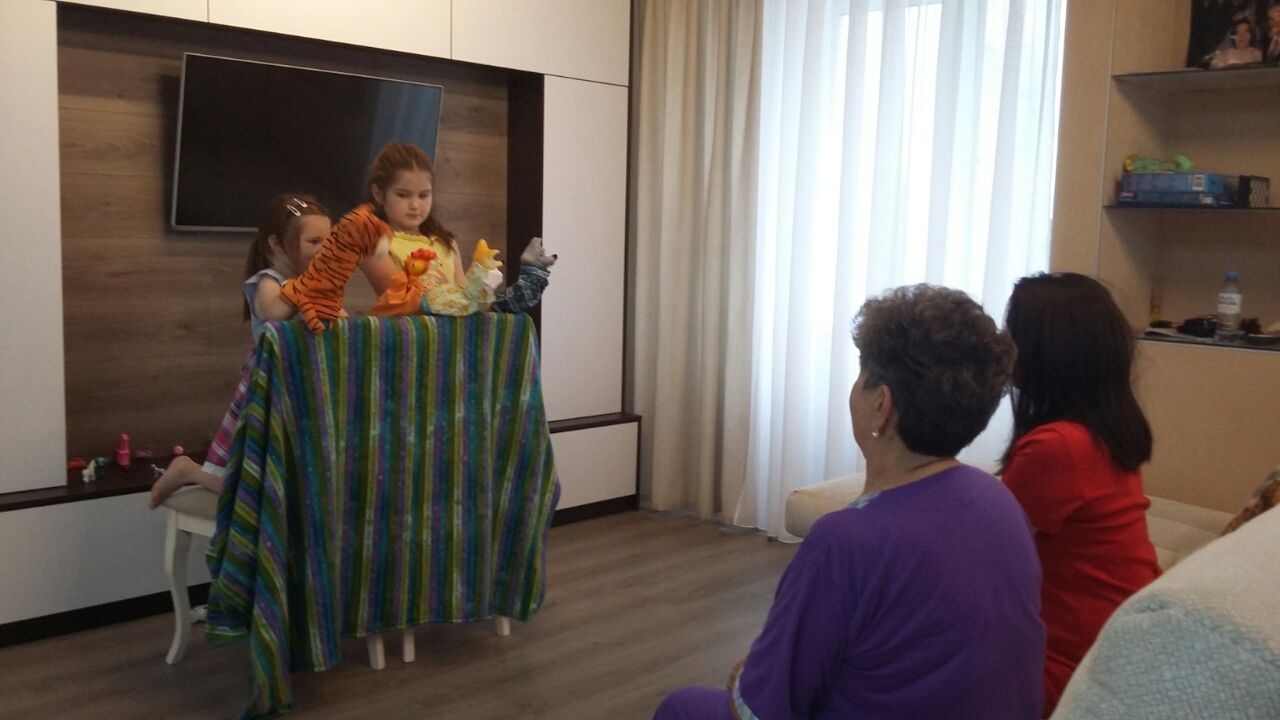Поздравили их, помогли по хозяйству, вместе столько дел переделали: и книги почитали, и сказку показали, песни пели, пироги вместе пекли.