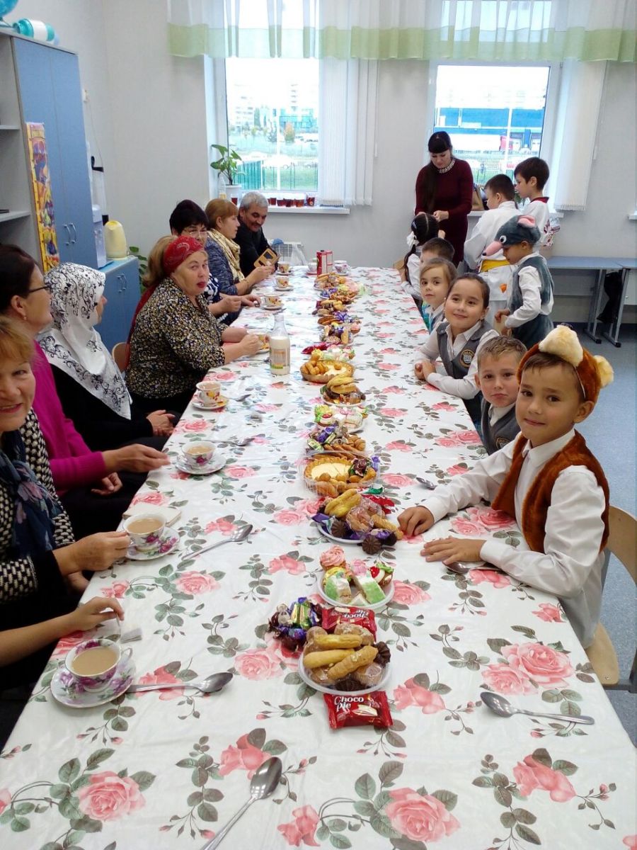 Пригласили бабушек и дедушек. Родители нам помогли накрыть стол, угощения купили на свои деньги, заработанные на благотворительной ярмарке.
