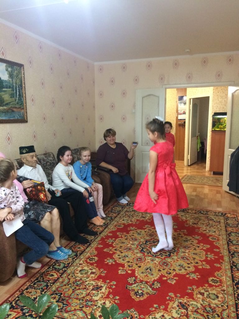 Поздравили с праздником, стихи читали, пели песни. И чем смогли, по хозяйству помогли.