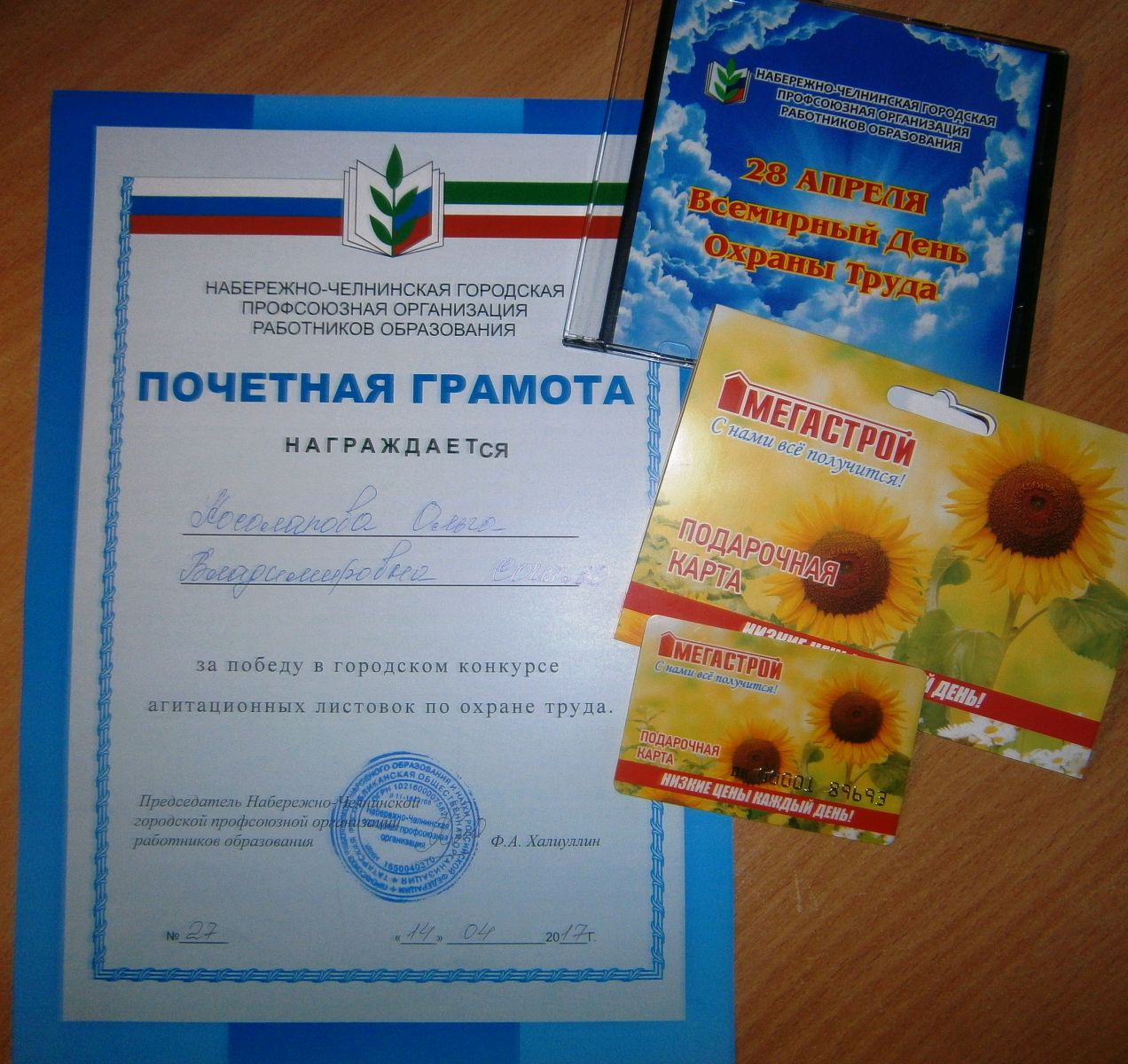 МБОУ СОШ №30 26 апреля приняла участие в семинаре-совещании для уполномоченных по охране труда и председателей ППО,посвященному Всемирному Дню охраны труда по теме "Вместе повысим культуру профилактики в охране труда" проходящем в ДК "Энергетик"организованном Набережно-Челнинской городской профсоюзной организацией работников образования.Работа проходила в 2 этапа: работа групп по секциям (квест-игра), пленарная часть.Школа получила награду в городском конкурсе агитационных листовок по ОТ и подарочную карту "Мегастрой".ПОЗДРАВЛЯЕМ!!! 21.04.2017