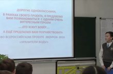 Ученики класса были вовлечены в увлекательное путешествие с Бобром его другом Аквусом. Была продемонстрирована красочная видео-презентация по данной экологической проблеме, которую комментировал Егор Быстренин.