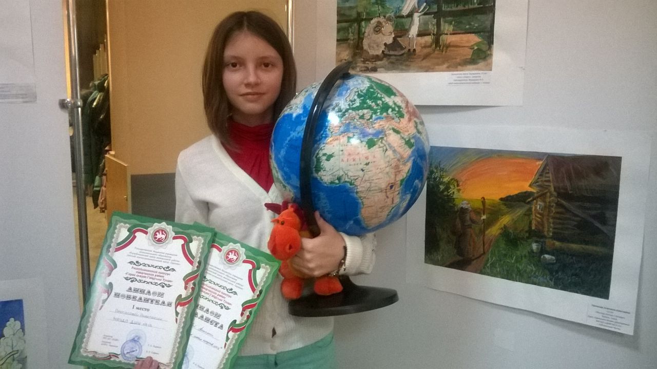 Ученица 7В класса Протасова Анастасия заняла 1 место в республиканском конкурсе рисунков "Герои сказок Габдуллы Тукая" г.Казань