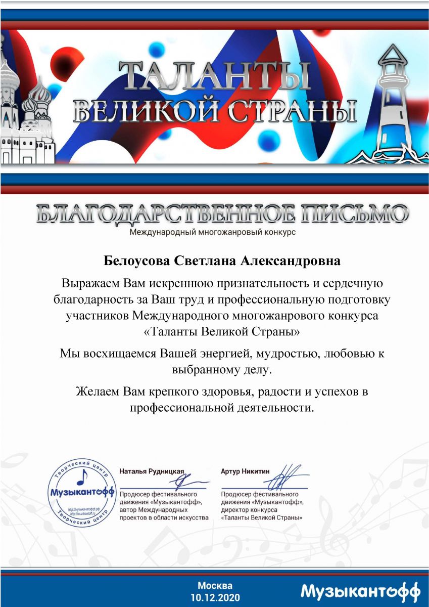 Поздравляем учителя музыки нашей школы Белоусову Светлану Александроввну - её ученица Марданшина Луиза стала