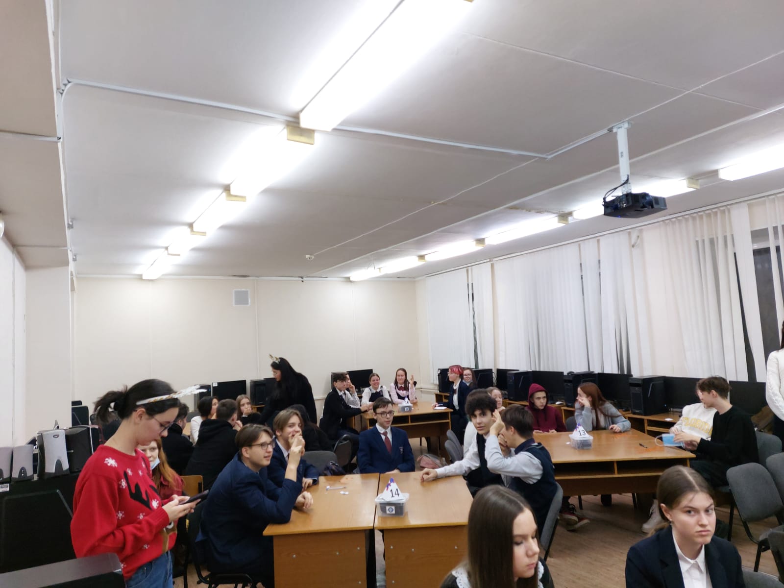 Сегодня, 23.12.2021 года, филологический факультет НГПУ проводил интеллектуальную игру “Xmas is coming” на английском языке в формате рождественских встреч. В страноведческой игре приняли участие школы города. Нашу школу представляли две команды: 1) учащиеся 9-х классов: Сержантов Алексей, Степанов Артур, Стрыгин Оскар, Захаров Данила, Гильмуллин Ислам ( учителя англ.языка Латыпова Г.Р., Салимгараева А.Р. ) 2) учащиеся 10 классов: Плешакова Ксения, Махонина Дарина, Казанваева Лиана, Суфиянова Диляра, Шмаков Роман, Бикбаев Данил (учителя англ.языка: Матросова С.Ф., Чистякова Н.А.) Заданий было очень много, но ребята получили удовольствие от игры. По итогам игры команда “Ggwp” (10 классы) стала победителем, а команда 9 класса заняла 4 место. Поздравляем и так держать!