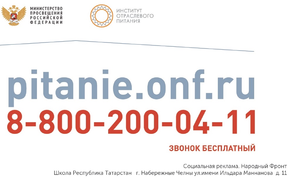 Опубликовано: 12.10.2023Общероссийским общественным движением «Народный фронт «За Россию» (далее – Народный Фронт) совместно с Минпросвещения России и АНО «Институт отраслевого питания» запущена горячая линия «Школьный завтрак» с целью контроля качества школьного питания.