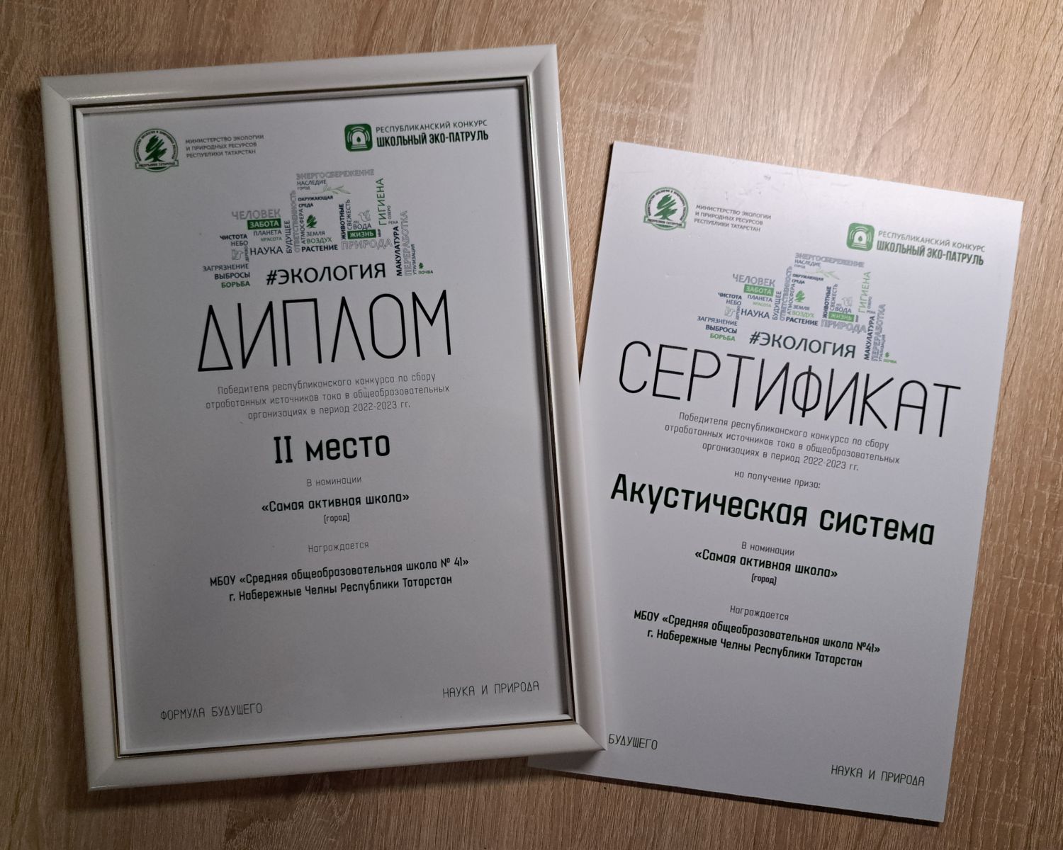 30 ноября 2023 года в астрономической обсерватории им. В.П. Энгельгардта в рамках Республиканского конкурса "Школьный эко-патруль" состоялась торжественная церемония награждения Победителей Республиканского конкурса отработанных источников тока в общеобразовательных организациях в период 2022-2023 г.г. Наша школа заняла почётное 2 место в номинации "Самая активная школа". Ученик нашей школы Хузин Расим занял почётное 1 место в номинации "Самый активный школьник среди 9-11 классов"