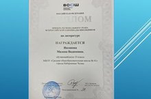 Призер регионального этапа Всероссийской олимпиады по литературе 11.02.2023