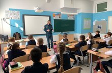 Ход проведения линеек в классе: видеопоздравление от администрации школы, обзорный ролик по школе, классные часы -