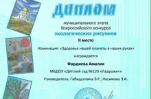 Фардиева Амалия заняла 2 место в муниципальном этапе всероссийского конкурса экологических рисунков. Поздравляем!