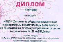 По итогам конкурса на лучшее благоустройство, озеленение и цветочное оформление территории города Набережные Челны в номинации "Лучшее цветочное оформление входной группы" в категории "Муниципальные учреждения" наш детский сад "АБВГДейка" одержал победу и стал обладателем диплома I степени. Благодаря стараниям наших сотрудников и уходу за растениями с любовью и заботой, наши клумбы и цветники весной и летом радуют глаз своим буйством цветения и невероятным благоуханием, делают территорию детского сада красивой, ухоженной и привлекательной, приносят детям и взрослым радость и эстетическое удовольствие. Эта награда Исполнительного комитета нашего города - высокая оценка созидательного труда наших коллег и свидетельство признания их заслуг на муниципальном уровне.