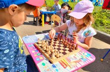 20 июля во всём мире отмечается Международный день шахмат. Название игры берёт начало из персидского: "шах" и "мат", что буквально переводится, как «властитель умер», а родиной шахмат является Индия. Игра в шахматы влияет на умственное развитие и формирование гармоничной личности в целом, тренируя память, внимание, мышление, воображение и соответственно все психические познавательные процессы. Анализ ходов в игре способствует развитию логического и стратегического мышления, целеустрёмленности и усидчивости. Игра в шахматы способствует интеллектуальному развитию дошколят и помогает подготовить их к быстрому и успешному освоению общеобразовательных дисциплин. Поэтому неслучайно в нашем саду этому направлению уделяется большое внимание. Наши воспитанники не понаслышке знают о шахматах. Ребята с удовольствием посещают шахматный кружок в нашем детском саду. Это увлечение с энтузиазмом поддерживают и педагоги, и родители. Мы не остались в стороне от праздника, поэтому провели с ребятами на свежем воздухе настоящий шахматный турнир, посвящённый Международному Дню шахмат. Мероприятие получилось увлекательным, ярким, зрелищным и весёлым, так как интеллектуальные поединки ребят между собой мы разбавили всеобщим зажигательным танцевальным флешмобом. Желаем любителям шахмат получать удовольствие от процесса игры, а юным спортсменам – триумфальных побед!