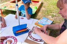 Каждый из нас в далёком детстве сталкивался с трудностями при написании букв в прописях. Часто, с особым усердием выводимые буквы не давали должных результатов, а каждый изгиб давался с трудом. Корни этих проблем уходят в дошкольный период развития. Дошкольная педагогика непрервыно развивается и сегодня идеи педагогов-новаторов, отличающиеся новизной, технологичностью, актуальностью, позволяют использовать доступные нестандартные средства при подготовке малышей к школе. Одним из таких средств является линейка Спирограф. Спирограф одна из самых высокоинтеллектуальных игр 20 века. Количество вычерчиваемых узоров мнгогочисленно и ограничивается лишь фантазией и способностями самого человека. У детей спирограф развивает воображение, фантазию, творческое и логическое мышление, способность к рисованию, моторику рук и координацию движения кисти. Улучшает характер почерка и увеличивает скорость письма. Учит моделированию цветов и пространственному мышлению. Практическая деятельность со спирографом способствует подготовке руки детей старшего дошкольного возраста к овладению письмом. Ребята с удовольствием на свежем воздухе занимаются спирографией, создавая чудесные узоры с психологом Людмилой Николаевной.