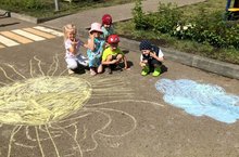 В День рисования на асфальте все желающие выходят на улицы и рисуют цветными мелками или красками. Устраиваются конкурсы рисунков. В роли жюри выступают обычные прохожие. Разрешается рисовать всё, что хочется. Можно изобразить на асфальте свою мечту или всеобщее желание компании друзей. Главное всё делать от души. Ведь этот праздник также позволяет стереть плохое, прогнать уныние и печаль. Для этого нужно сначала нарисовать грустный рисунок, затем преобразить его в весёлый. Такой способ помогает настроиться на позитив и изменить жизнь к лучшему. В рамках мероприятий, приуроченных к Дню рисования на асфальте, в ясные, солнечные дни мы с ребятами провели занятия по коллективному рисованию "Юный художник". Наши малыши присоединились к всеобщему позитивному настрою этого праздника и украсили дорожки нашего сада добрыми рисунками. В процессе рисования у детей развиваются не только творческие способности, но и диалоговая речь. Договариваясь и обсуждая между собой сюжет своих рисунков, дети приобретают важнейшие коммуникативные навыки. Так, большинство рисунков получаются коллективными. Причём изначально каждый из детей начинает рисовать свой рисунок самостоятельно. И уже в процессе рисования у детей интереснейшим способом получается один общий сюжет. Асфальт для малышей в этот момент становится большим полотном для творчества и каждый способен почувствовать себя настоящим художником, создающим шедевр.