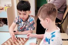 Шахматная игра дарит ребенку радость творчества и обогащает его духовно, одновременно являясь средством обучения, воспитания и развития. Однако при этом важно, чтобы это средство было ненавязчивым, увлекательным и интересным. Лишь в этом случае оно будет полезным и эффективным. Увлечение шахматами оказывает немаловажное влияние на подготовку ребёнка к школе, так как игра развивает математические способности, логическое мышление и память, которые важны для хорошей успеваемости в школе. В наше время очень актуально обучение игре в шахматы с самого раннего возраста. Множество игровых методик делают игру по-настоящему увлекательной. Процесс обучения азам шахматной игры способствует развитию у детей способности ориентироваться на плоскости, логического мышления, суждений, умозаключений. Игра учит ребёнка запоминать, обобщать, предвидеть результаты своей деятельности. Благодаря этой игре дети учатся быть терпеливыми, усидчивыми, настойчивыми в достижении поставленной цели, вырабатывают в себе работоспособность, умение решать логические задачи в условиях дефицита времени, тренируют память, учатся самодисциплине. Все эти необходимые навыки наши ребята активно постигают на занятиях шахматного кружка под руководством воспитателя Атакишиевой Ильмиры Радульевны.
