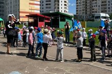 Международный день защиты детей имеет собственный флаг. На зелёном фоне, символизирующем рост, гармонию, новизну, плодородие, вокруг знака Земли размещены человеческие фигурки — красная, жёлтая, синяя, белая и черная. Они символизируют разнообразие и терпимость. Знак Земли, размещённый в центре, — это символ нашего общего дома для всех живущих на планете Земля. Флаг является также символом дружбы, единства и уважения друг к другу, несмотря на внешние различия. Вот и мы сегодня, дружно взявшись за руки, отправились на площадку детского сада, чтобы весело отметить этот добрый, светлый праздник и встретить самое чудесное время года. Погода нас не подвела - день выдался ярким, солнечным и идеальным для развлечения на свежем воздухе. В программе были заводные песни о лете, зажигательные танцы, забавные конкурсы. Ребята активно принимали участие во всех заданиях, оглашая площадку дружным заливистым смехом. В гости к нам пожаловали сказочные герои - госпожа Беладонна и Дядюшка Фокус Мокус из "Приключений поросёнка Фунтика". Наши гости задорно развлекали детей загадками и подвижными играми. Исполнив любимые песни о лете, ребята принялись рисовать на асфальте солнце, мирное небо, свою семью. В завершение праздника наши сказочные герои устроили с ребятами шоу мыльных пузырей, вызвав у детей восторг. Пусть летнее солнышко увидит наших детей радостными, весёлыми, ловкими, умелыми! И пусть наши озорные дружные ребята будут здоровы и счастливы, а небо над их головами - всегда мирным!