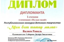 Уже традиционным мероприятием стало проведение республиканского конкурса детского творчества «Мин бит татар малае» в Елабужском муниципальном районе на базе детского сада №29 «Золотая рыбка». В очередной раз сюда съехались талантливые участники из Менделеевска, Набережных Челнов, Мамадыша, Муслюмово, Елабуги. По словам организаторов цель данного мероприятия – сохранение языка и национальных культурных традиций татарского народа. Поздравляем нашего воспитанника Валиева Равиля и его творческого руководителя - воспитателя по обучению детей родному языку Сабирову Диляру Зявдатовну с заслуженной победой. Гордимся достижениями и успехами наших педагогов и воспитанников! Желаем дальнейших творческих побед!