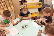Во времена наших предков естественными счетными устройствами были пальцы ног и рук. Результаты счета фиксировались с помощью узелков на веревках или зарубок на ветках деревьев и костях животных. Со временем стали появляться сложные приборы для вычислений. Первым из них считается абак, созданный в Древней Греции и Месопотамии более 5 тысяч лет назад. Абак представлял собой дощечку с углублениями, по которым передвигали косточки, имевшие определенное числовое значение. Китайцы превратили эту дощечку в рамку со стержнями и косточками и назвали ее суаньпань. Японцы убрали дополнительную косточку сверху и назвали счетное устройство соробаном - абакусом, что в переводе значит "вычислительная доска". На изучении принципов работы абакуса основана уникальная методика развития интеллектуальных и творческих способностей детей - ментальная арифметика. Правое полушарие мозга человека отвечает за творчество, левое - за логику. Работая левой рукой мы "включаем" правое полушарие, а правой рукой - левое. Задача ментальной арифметики - задействовать весь мозг в образовательном процессе. Синхронная работа правого и левого полушария мозга дает огромный потенциал для развития ребенка. Абакус выглядит как прямоугольник с вертикальными спицами, разделенный горизонтальной длинной перегородкой. В каждом ряду абакуса находится пять косточек: верхние косточки — это пятерки (как говорили китайцы — «небесные косточки»), а под перегородкой — четыре «земные» косточки, каждая из которых равна единице. При работе с абакусом используют большой и указательный пальцы. Нижние косточки добавляют большим пальцем, а вычитают указательным. Верхние косточки добавляют и вычитают только указательным пальцем. Ментальная арифметика позволяет развивать мыслительную деятельность ребенка и его творческое начало. Упражнения на абакусе развивают мелкую моторику, стимулируют работу и гармоничное развитие обоих полушарий головного мозга. Занятия у детей, посещающих кружок ментальной арифметики "Занимательный абакус", проходят очень увлекательно. Руководит кружком педагог-психолог Ванюшина Людмила Николаевна.