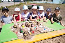 Всем нам хорошо знакомый песок кажется обыденным явлением. Но на самом деле это очень интересный материал. И дети, и взрослые могут часами возиться в песке, строить башни, города или просто наблюдать за ним, пересыпая с ладони на ладонь. Песок обладает разными свойствами: он может быть сухим и мокрым, легким и тяжелым, липким и рассыпчатым. Играя с ним, ребенок открывает для себя что-то удивительное, новое, познавательное. Игры с песком имеют большое значение для поддержания психического здоровья и развития познавательных процессов, влияют на формирование представлений об окружающем мире. Сегодня мы с ребятами решили творить и созидать при помощи песка. Ребята с увлечением проявляли фантазию и вскоре перед нами появились целые замки, мосты и города. Непохожие друг на друга, украшенные ракушками, цветочками, листиками и яркими фигурками, постройки вызывали удивление и восхищение. Вот так в увлекательной игровой форме ребята познакомились со свойствами песка. К тому же все участники занятия получили эстетическое удовольствие и массу положительных впечатлений. Так устроено природой, что дети – это в первую очередь исследователи. Поэтому им необходимо помогать делать открытия, дать возможность пробовать, исследовать, искать, изучать, думать, размышлять, анализировать, делать выводы, экспериментировать, а самое главное - самовыражаться.