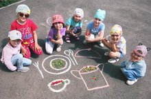 Множество необычных и забавных праздников придумано человечеством. Небольшие яркие события позволяют отвлечься от повседневных забот, поднять настроение, устроить для себя и окружающих увлекательные мероприятия. Одним из таких праздников является День рисования на асфальте, который отмечается ежегодно 16 июля. Рисование на асфальте – это не только развлечение для маленьких детей, но и один из вариантов уличного искусства, которое зародилось еще в XVI веке на территории Европы. Художники-путешественники украшали городские площади своими картинами, рисуя их мелом. Рисунки предназначались людям, не умеющим читать, но способным воспринимать зрительные образы. Сегодняшний летний теплый день мы решили посвятить этому празднику. Ведь мелки для рисования - это такой же непременный атрибут летних игр на улице, как ведерко, лопатка, формочки или мыльные пузыри. Рисование на асфальте — это не только веселое занятие во время прогулки. Это и творчество, и познание окружающего мира. В процессе рисования у детей развиваются не только творческие способности, но и диалоговая речь. Договариваясь и обсуждая между собой сюжет своих рисунков, дети приобретают важнейшие коммуникативные навыки. Рисование мелками на асфальте активизирует у малышей умственную деятельность, позволяет закрепить полученные знания и расширить свой кругозор. Большинство картин на асфальте получаются коллективными. Причем изначально каждый из детей начинает рисовать свой рисунок самостоятельно. И уже в процессе рисования у детей интереснейшим способом получается один общий сюжет. Асфальт для них в этот момент становится большим полотном для их творчества и каждый способен почувствовать себя настоящим художником, создающим шедевр.