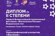 По итогам федерального этапа Первого Всероссийского музыкального фестиваля "Воспитатели России" наш хореографический коллектив "Фантазия" удостоен диплома II степени. Наши юные таланты покорили жюри в номинации "Коллективный танец" своим блестящим выступлением - танцевальным номером "Там на неведомых дорожках". Поздравляем наших талантливых ребят и музыкального руководителя Зуеву Ольгу Олеговну с наградой, которая, несомненно, стала ярким подтверждением упорства, старания и мастерства хореографического коллектива во главе с их творческим наставником. Гордимся и желаем вам всегда быть на высоте своих возможностей, талантов и способностей. Пусть удача и успех всегда будут на вашей стороне!