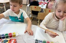 - Закреплять умение отжимать лишнюю краску о край розетки (баночки).