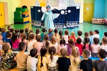 В гости в очередной раз к ребятам приехал кукольный театр. С каким же нетерпением ждут дети встречи с ним. Куклы их веселят, обучают, развивают. Счастливые улыбки, горящие глаза и радостные лица малышей после просмотра спектакля убедительно свидетельствуют - театр детьми очень любим. Сказочные декорации и персонажи, красивая весёлая музыка и интересный сюжет сказки увлекают наших детей. Ребята с интересом следят за героями сказки, вместе с ними радуются, веселятся, поют и помогают главным героям. А актёры, чувствуя такую тёплую поддержку, всегда на высоте.