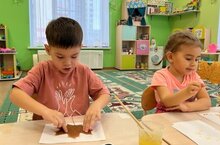 В 10 группе прошло увлекательное занятие по рисованию «Осенние листья». Цель занятия: выполнение рисунка в нетрадиционной технике печатания листьями. Задачи: развивать творческие способности, чувство композиции, соблюдать точную последовательность техники выполнения работы, воспитывать умение аккуратно пользоваться материалами.