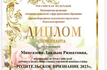 В этом году все родители дошкольников и школьников всех регионов России имели возможность выразить свою благодарность и признание одному или нескольким педагогам, руководителям, образовательной организации (коллективу педагогов), просто разместив свою признательность и информацию о достойных признания педагогах, руководителях, образовательных организациях на одноименном Всероссийском педагогическом портале почёта проекта «Родительское признание 2023». Благодарим родителей наших воспитанников за проявленную активную позицию и высокую оценку деятельности нашего замечательного руководителя!