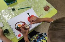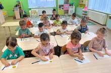 История дымковского промысла насчитывает около 400 лет. Глиняная игрушка, выполненная методом ручной лепки, прошедшая обжиг при температуре 850 градусов, побеленная и расписанная яркими темперными красками традиционными орнаментами, характерными только для этого промысла, украшается ромбами из золотой потали или сусального золота. Для дымковских игрушек характерно большое разнообразие форм – это фигурки и свистульки в виде животных и птиц, коней, всадников, нарядных барынь и деревенских крестьянок. Сегодня мастерство, как и прежде, бережно передаётся от опытных мастеров молодым, тем самым сохраняется преемственность поколений в народном художественном промысле. Ознакомившись с темой дымковских игрушек, дети 10 группы приступили к рисованию дымковских птичек.