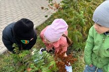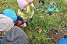 Ребята 11 и 12 групп с увлечением рассматривают грибочки на прогулке.