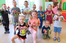 Физическое воспитание играет главную роль во всестороннем развитии современного дошкольника. Упражнения и игры с мячом благотворно влияют на физическое развитие и работоспособность ребёнка, позволяют всесторонне воздействовать на мышечную систему детей, укреплять их костный аппарат, развивать дыхательную и сердечно-сосудистую системы, регулировать обмен веществ. Наиболее приемлемой спортивной игрой для детей в детском саду является футбол. В нашем саду прошло замечательное мероприятие, объединившее воспитанников, их родителей и воспитателей - День футбола. Вчера на площадке детского сада нам представилась замечательная возможность подарить детям радость, яркие эмоции и впечатления от процесса игры и обучения футболу наряду с пользой для общего физического развития. Спортивные викторины и загадки показали, что наши ребята отлично подкованы в вопросах спорта. Мастер-класс по набиванию мяча от неутомимых пап наших воспитанников привёл в восторг всех участников мероприятия. Зажигательный танец от маленьких болельщиц из группы поддержки зарядил всех энергией и укрепил спортивный дух. Соревнования проходили в форме эстафет, при этом ребята активно болели друг за друга. Наши юные спортсмены демонстрировали умение вести мяч, забивать голы в ворота и выполнять змейку, учились передавать мяч друг другу и останавливать ногой. Возможно, не у всех всё получалось с первого раза, но это не убавило пыла у наших начинающих футболистов. Кульминационной частью нашего праздника стал комический футбол между воспитателями, детьми и родителями воспитанников. Главная фишка комического футбола в том, что можно играть не по правилам и забавно импровизировать в ходе игры: поднять и унести игрока с поля, прятать мяч под юбкой или в штанах, доставать другие похожие мячи, брать мяч руками, ложиться на мяч и лежать, утаскивать ворота, обливать игроков водой и другие не менее забавные действия. Другая особенность игры в том, что одна команда состоит из забавных песонажей: дед Мороз и Снегурочка, цыганка и аквалангист, медсестра и повар, и т.д. Судья, замечания которого никто не слушает, может гоняться за игроками и лепить стикерами на лоб красные карточки. Эта весёлая и неожиданная игра привела в восторг и маленьких, и взрослых её участников. Матч прошёл в позитивном русле. Азарт игроков и эмоции болельщиков накаляли обстановку на нашем импровизированном поле и периодически вызывали всеобщий дружеский смех. Победила конечно же дружба! Праздник доставил огромное удовольствие и детям, и взрослым. Соревнования получились очень яркими и зрелищными. Дети получили большой опыт и незабываемые впечатления. Как и любая спортивная игра, помимо навыков физической выносливости футбол учит таким полезным навыкам, как командный дух, слаженность, дружелюбие, настойчивость и целеустремлённость, развивает ловкость, концентрацию внимания, воспитывает товарищеские взаимоотношения, чувство ответственности за себя и свою команду. Благодарим родителей детского сада за активное участие, воспитателей и их детей, профессионально занимающихся футболом, за проявленное творчество и помощь в организации и проведении этапов . Желаем всем дружить со спортом и играть в футбол! Оле-оле-оле!