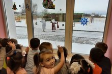 Сказка, чудеса, подарки, волшебство, пушистая ёлка – это всё про самый любимый всеми праздник – Новый год. С самого детства мы ждём этого события как чуда. Наши дети так ждали волшебства и исполнения желаний, что сегодняшний день начался с сюрприза, к нам в детский сад пришли Дед Мороз и Снегурочка. Они прогулялись вокруг сада, заглянув в окна и с улыбкой помахав ребятишкам. Вот так наши дети на миг очутились в сказке.