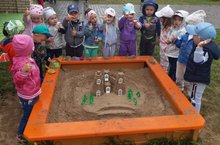 Лето-прекрасная пора для полноценного развития детей. Столько возможностей кругом: вода, трава, цветы, песок. Наверное, самый любимый материал летнего периода у всех детей — это песок. Можно проявить все свою неуемную фантазию. Конечно, попутно можно изучить правила поведения в песочнице: не бросаться песком в товарищей, не брать в рот, не трогать грязными руками глаза и т. д. А какие возможности для проведения опытно-экспериментальной деятельности. Изучение сухого и мокрого песка, песочные постройки, рисунки на песке. Идея творчества была так заразительна, что все ребята старались принять участие.