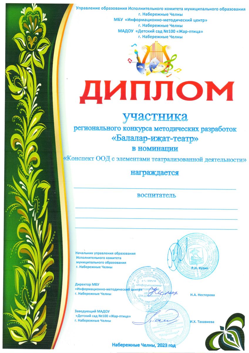 ИТОГИ конкурса"Балалар-ижат -театр" Диплом участника 1 Диплом участника 2